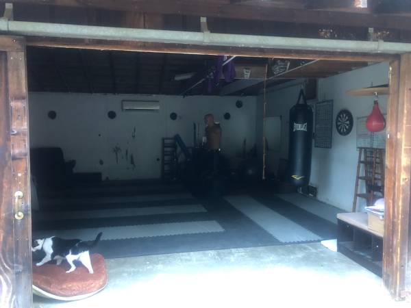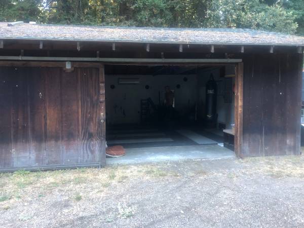 An outhouse with outdoor shower and a gym//studio space are available for use as well as some garden beds.