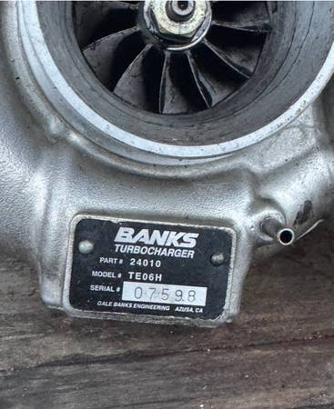 Have Turbo and housing, came off 7.3 international harvester v 8 diesel, turbo saw little use less than 8ooo miles on parts , this turbo was from a Banks turbo kit which reportedly adds 100 HP, if you have a Banks turbo on your truck and it’s smoking you probably blew your turbo and just turbo costs over two thousand $ you might want to get this part for inventory call Tom at 83 one, four 31 - zero 906 .