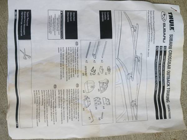 THULE - SOA567X020. SUBARU OUT BACK TOURING 2017- 2019.. NEW ( never been assembled). *Please check yourself car model / year and model number then email. *Cash only!