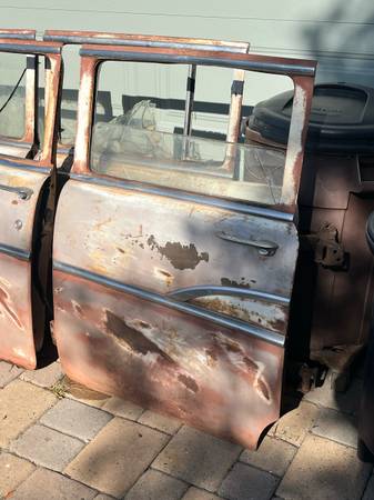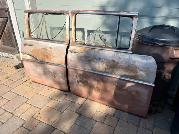 I have pair of rear doors in good condition $150 each door or $200 pair Also fit 1955 and 1956 but the door molding holes are only different Leave number and I'll contact you Thanks