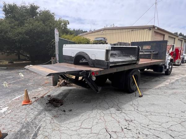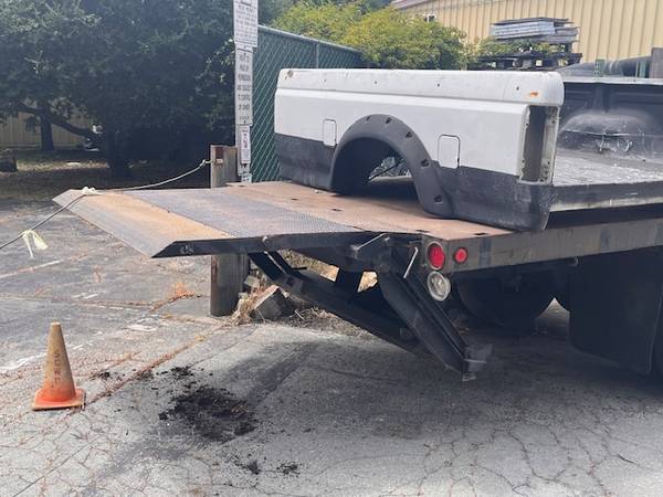 20 foot long x 8 foot wide steel deck flatbed Also includes a Electric Hydraulic liftgate $3975 Cash / No trades Call 83one ~ 345-9077