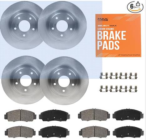 Complete Replacement Brake Kit: Includes 2 front + 2 rear OEM-spec brake rotors, 8 low-dust ceramic brake pads, installation hardware. Direct bolt-on fitment, no modifications.