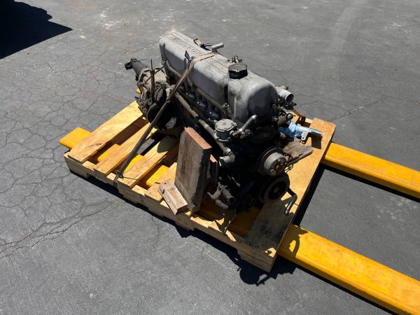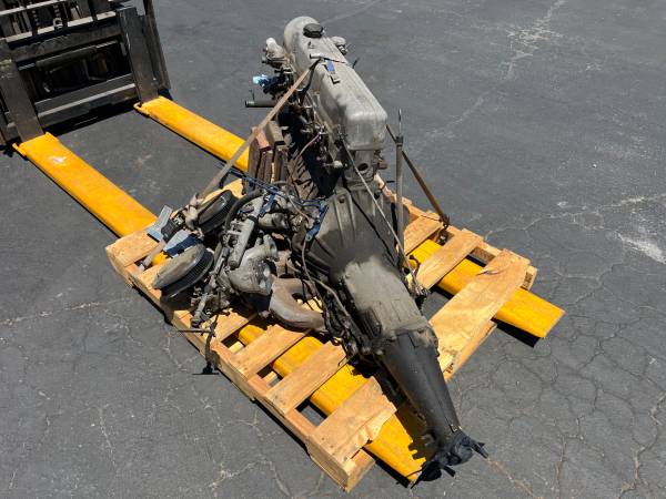 Full engine with E31 head and auto transmission along with exhaust and intake manifolds. Dual webber downdraft carbs with throttle linkage. All hardware to reattach manifolds to head. Heat shield. Fuel rail.