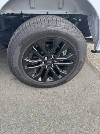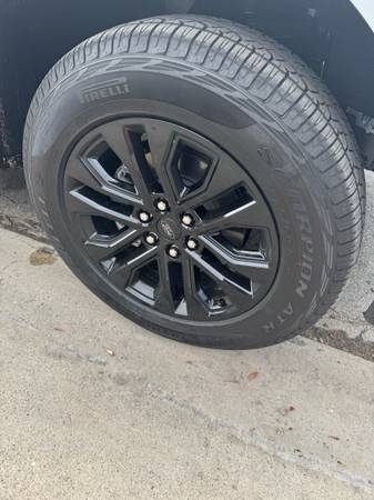 20 inch factory, OEM takeoff wheels and tires virtually new, 950 miles. Perelli scorpion ATR tires with 20 inch OEM black Ford wheels Perfect condition