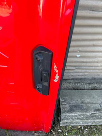 I have a Chevrolet Silverado 2500 , 3500 ,fire red color pick up tailgate with camera , it will work with years 2020-2021- 2022 -2023 -2024 . It is complete side cables , hinges , wiring harness for camera .It has a scrape( small dent ) on top , close to handle . Located in Santa Cruz . It has rhino lining on the back . show contact info