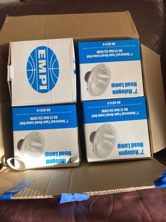 Four new EMPI Halogen headlight bulbs still in the box . They fit 67 and newer Bug's and Bus',etc.