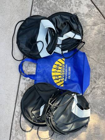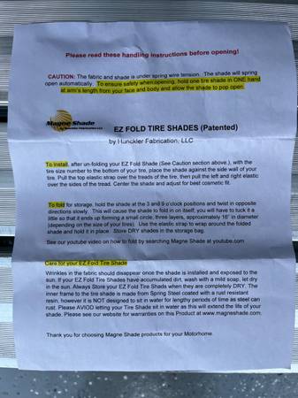 Tire Shades / Covers for Trucks or RV tires size 275/80-R22.5 ... these are of a flat 'doughnut shape', so they will fit many variances of TIRE/WHEEL combinations, but they were custom sized for my RV.