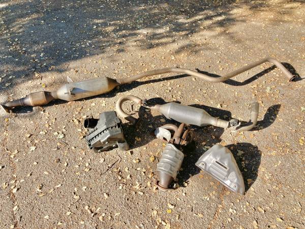Full stock exhaust from a Scion TC. Includes both sections with both mufflers, both cats, exhaust manifold and shield, and the intake air box. Everything worked when pulled but it’s been in storage for some years. Great for restoring stock exhaust for smog after doing a conversion.