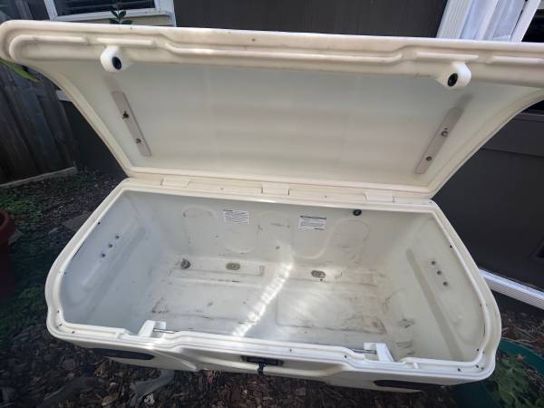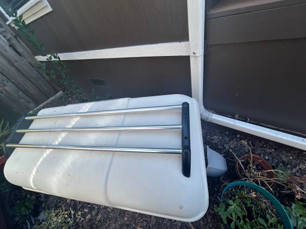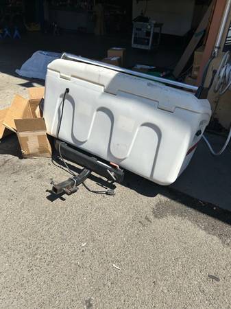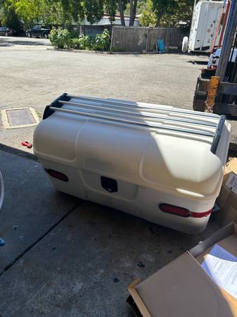 Do you feel jammed into your vehicle when you’re traveling and you wish you had extra room. This is a great unit for the back of your vehicle. It’s all been on the back of the van covered for most of its life. Right now it’s in the yard in the shade just a little dust and road dirt on it. I’m offering it to you as a steel