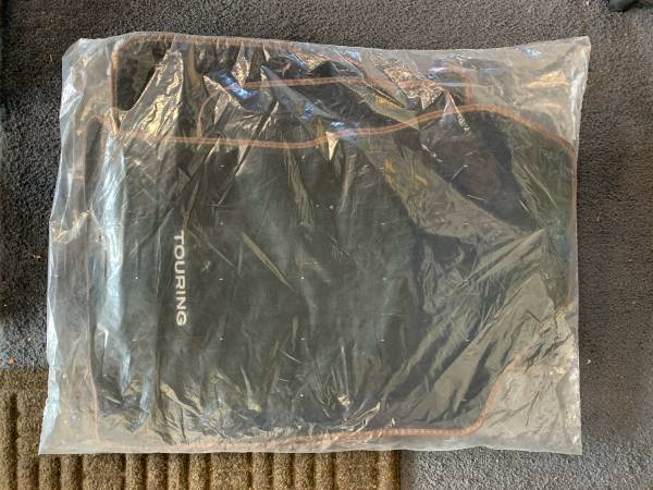 Brand new, unopened Subaru Outback Touring Carpet floor mats. Black with brown trim.