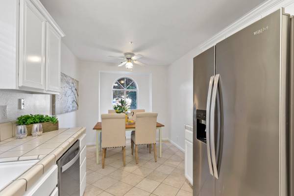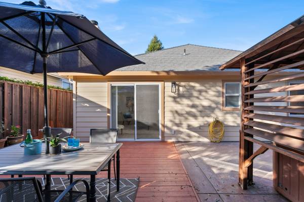 The home has been lovingly maintained with a newly painted interior, showcasing its relaxed floor-plan with contemporary and durable surfaces greeting the eye at every turn. The front yard has been refreshed with lush landscaping under the shade of a perfectly proportioned and manicured redwood tree, surrounded by thoughtfully-placed river and lava rocks that lead you past the high-quality artificial turf lawn, mature roses, and ornamental trees and flora that welcome you home.