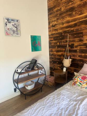 I’m renting out the master suite in my home. Fully furnished. Tempur-pedic bed with adjustable base, a projector with cable TV that projects onto the wall opposite of the bed, private bath with jetted tub, a patio off the master bedroom, huge walk in closet,