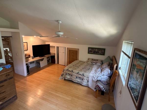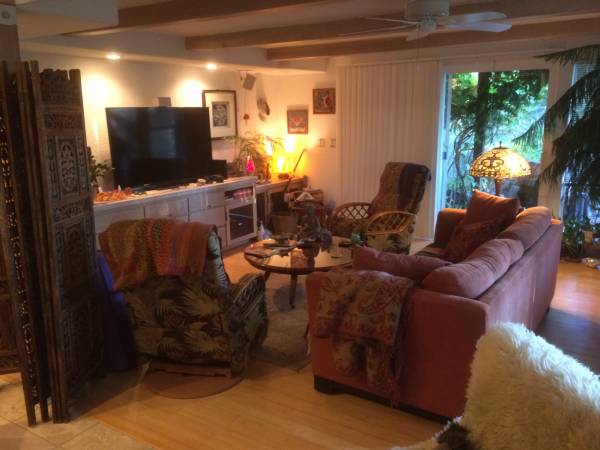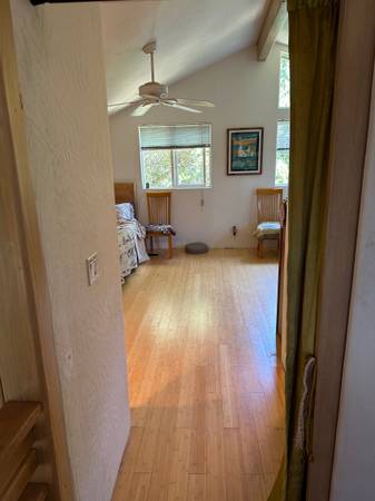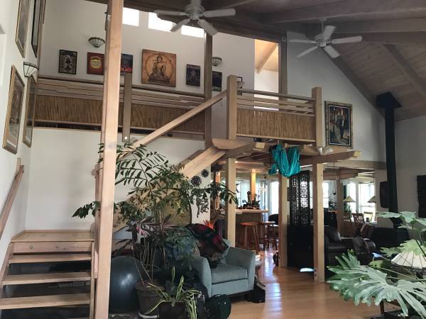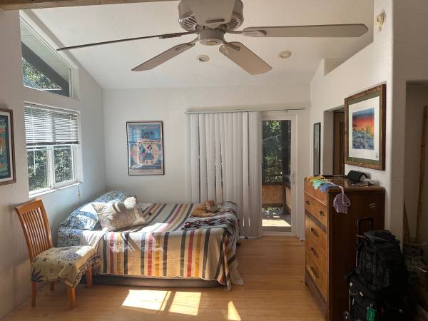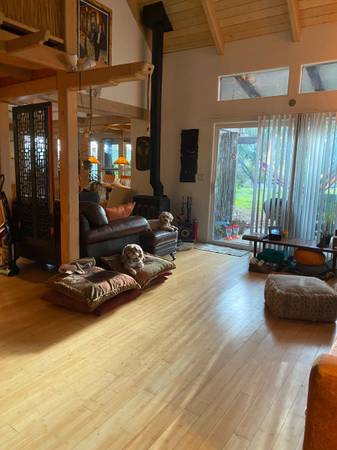 Upstairs Room for rent in a Beautiful ridge top Zen style home, 3 bedroom/3.5 bath, 3000 square feet, vaulted ceilings, bamboo floors, spacious with lots of glass. The room has its own outdoor balcony. Nothing but trees and sunshine 360 degrees. Room is for one person. No couples please. No pets. (we already have three dogs) Rent Includes Cable TV, WiFi and ALL Utilities.