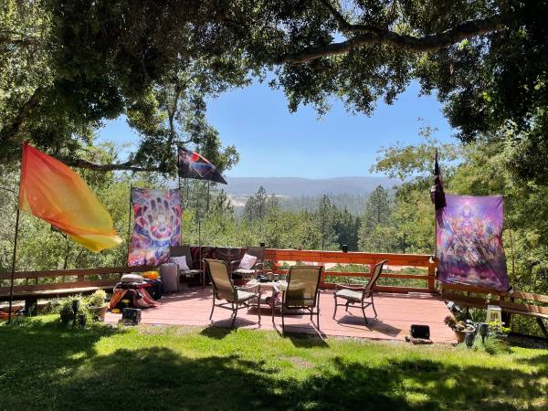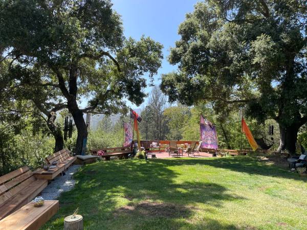 Large patio, stage and three other sitting areas outside and shaded. Outside hot tub. Mature landscaping and garden on an acre and a half, high-speed internet, cable, washer and dryer. 5 minutes from Felton. 10 minutes to Scotts valley. 15 minutes from Santa Cruz beaches. Easy 30-45 mins SJ, 1.5 hrs SF.