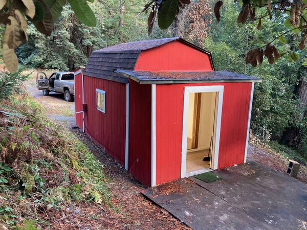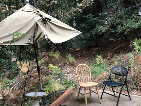 Rustic 150sf camping cabin with electricity without water in 45 acre redwood retreat center.