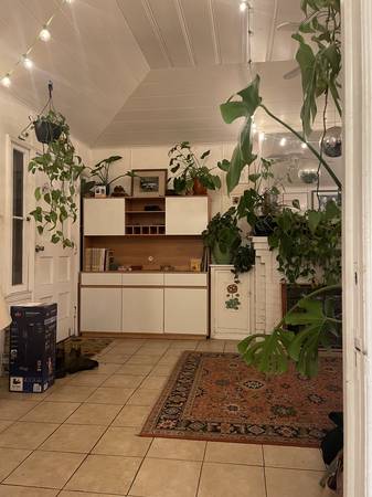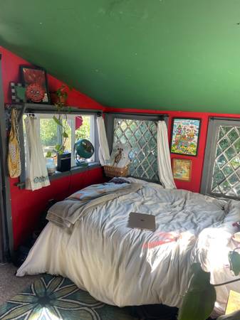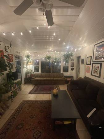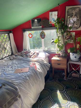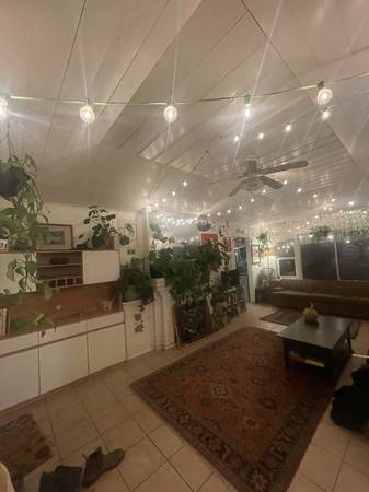 Room is $1100 and utilities run about 50-120$/month. Deposit $1150. Lease is month to month. Coin op laundry on-site. No couples. No dogs cuz our yard is unfenced into the oblivion. We have one indoor/outdoor cat. Another cat may be considered but would also have to be indoor/outdoor and a hardy fella.