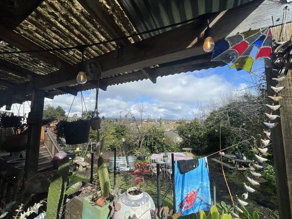 It is about 100 years old. There are 2 other houses and 3 ADUs on the lot. Street parking with permit. Plenty of it. No driveway.