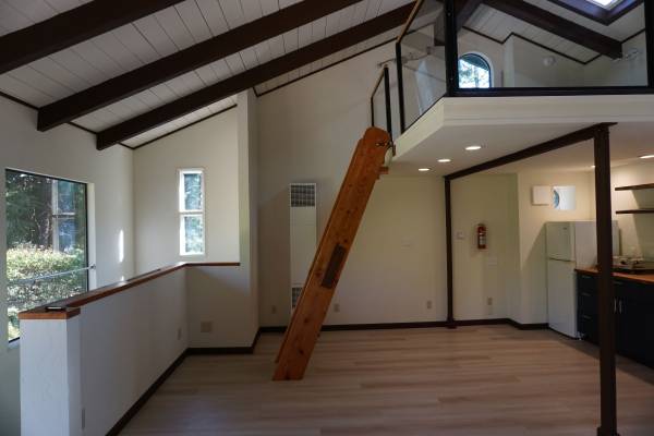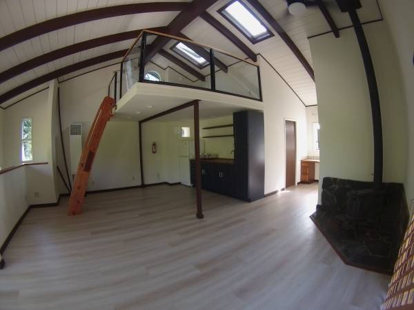 This unique studio with a sleeping loft, full bathroom with tub and shower, kitchenette, wood-stove, wall heater, ceiling fans, and tank-less water heater is definitely a one of a kind space :-) Delicious well drinking water right out of the tap. Would be perfect for a single person, a couple, or two people. Not suitable for more than 2 people as on a septic system.