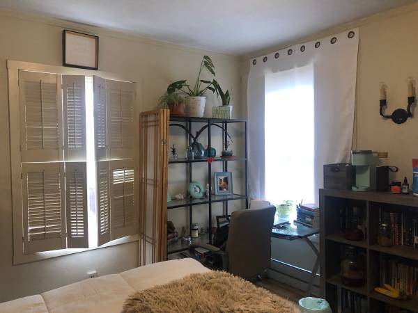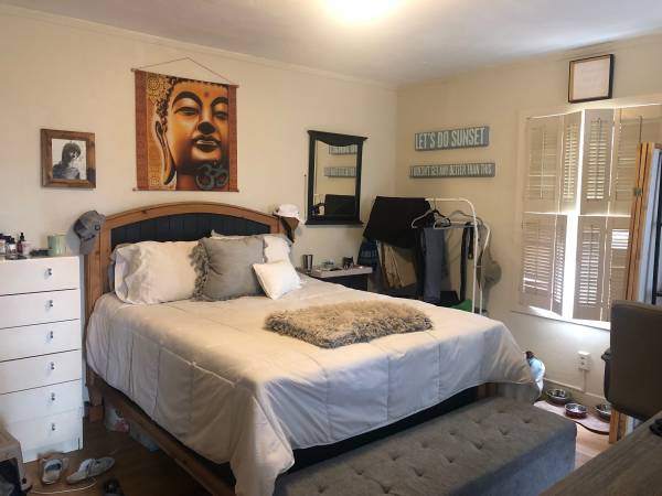 The room is quite large, most renters have fit queen bed/couch/desks/dressers...some garage storage available.