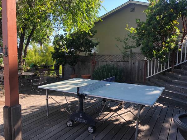 House has a grand piano and ping pong table and large outdoor seating area where you can garden or work/study under the tree canopy if you need a change of scene.