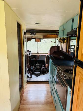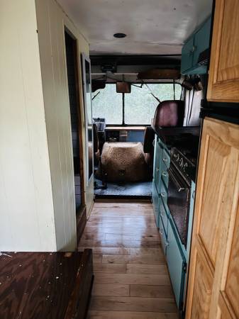 I'm sadly for me hopefully happy for you finally offering up my 1961 International Harvester truck converted into a tiny home. I bought it a few years ago planning to live in it but never did, and it has just been sitting in a meadow all that time. It was in decent running condition when I got it and made a several hundred mile trip to where it's parked now, but after sitting for so long it isn't in the same shape, and I can't guarantee its condition because I haven't been able to find a mechanic who will work on it. I realized it really should be with someone more mechanical than me and hopefully a harvester fan. It has a (what was new when I got it and has never been used) solar system with an inverter and batteries, a rooftop deck, a working shower, a working kitchen and fridge, wood floors, custom woodwork, and more as you can see from the photos. This truck has a long history and has been pieced together a lot over the years by people who luckily kept decent records. It has a 1977 RV engine in it with apparently low mileage, but I don't know the mileage for sure. It has plenty of power but gets truly terrible gas mileage (12 mpg or so). It also has an automatic transmission installed. I typed up what I could translate of a list of all the parts that was written on an old piece of paper, but please forgive me if I messed anything up as I don't speak mechanic language. I'm really not even sure what mechanical shape it's in now... it runs... and I had some work done on it, but I'm not confident in the brakes right now and wouldn't feel right selling it to someone without mechanical skills to ensure it's safety, and I would suggest towing it out just to be safe. So this is a mechanic's special but also an extremely rare one of a kind frankensteined together fully functional tiny home with tons of potential. I hope I can find someone to give it a good next chapter of its long and storied life. These are recent photos. I'm open to offers. It is currently registered and insured.