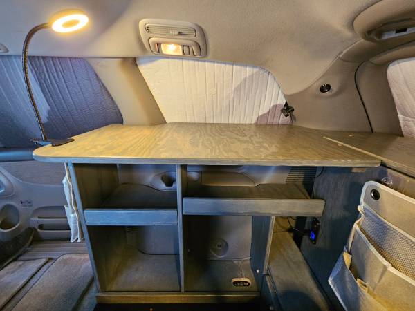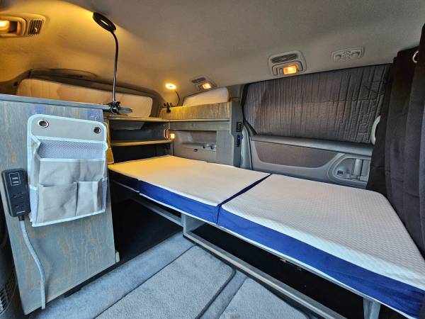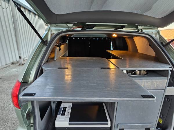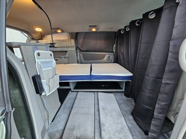 Up for sale is a unique 2006 Toyota Sienna LE that has been converted to be a nimble, reliable, and economical stealth and outdoor camper. The brand new conversion build has been carefully designed and executed to create a private sleeping and lounging space for one person.