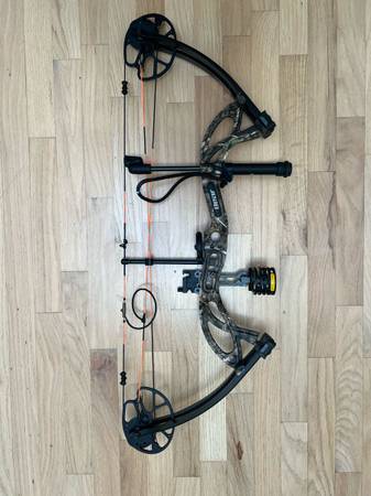 • Comes with Trophy Ridge 5-pin sight, Whisker Biscuit rest, stabilizer, peep, and string silencers installed.