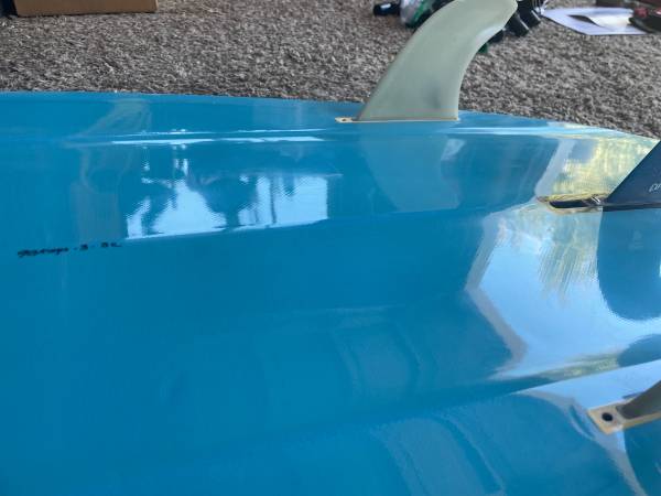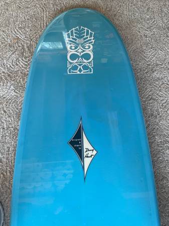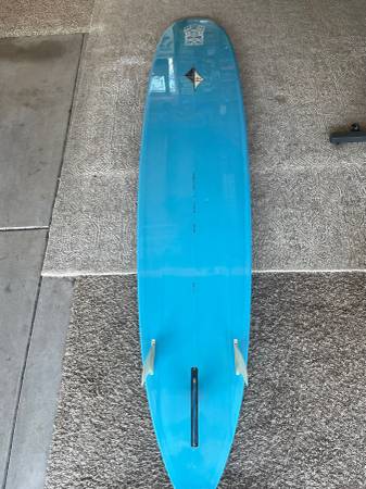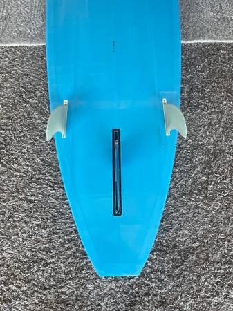 Custom hand shaped Doug Haut 9’ high-performance longboard. Channel bottom, fast and maneuverable excellent condition no dings. Does have pressure dings on the deck. Opaque blue with black pinstripes.Your chance to own a hand shaped board by a legendary shaper. Fins included.