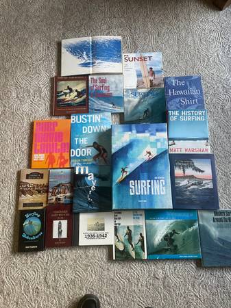 selling off my collection of hardback books related to surfing. Many books are coffee table versions. Some very hard to come by. books are individually priced.