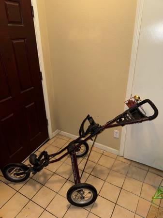 Sun Mountain push cart works fine has brakes just missing the top two the plastic cover