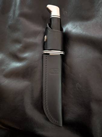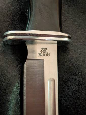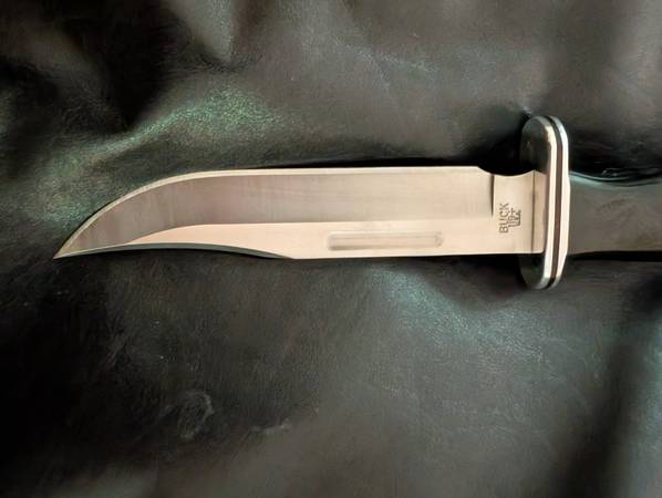 Original factory hollow ground razor sharp edge. Never used. Black leather Buck belt-carry sheath. 10 1/2" overall. Pick up in Felton, Davenport or Santa Cruz West Side. Thank you for looking and understanding the need for you to reply with your phone number. Price is firm no trades.