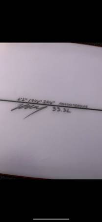Hey everyone, I’m selling a K.O. Designs 6’2” rounded pin. Futures fin boxes, thruster set up. This board is lightly used and in excellent condition, no dings other than minor pressure dents on the deck. Full dimensions in the pictures. Asking $350 OBO, I’ll throw in some nice fins by Arrow for an extra $50. Fall is here and our bigger swells are showing up! Grab this board and get out there! Email with a phone number for a response. Thanks for looking!