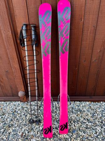 K2 Missy 139cm kid’s skis. Sorry no poles. These are my daughter’s skis that she has out grown. Maybe 10 days on skis. Fresh wax and edge tune.