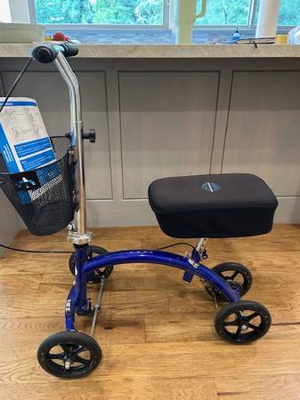 Knee Rover knee scooter. Used, like new condition. Has an extra pad for knee as shown in pictures. Will also throw in a shower cover that goes above the knee.
