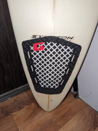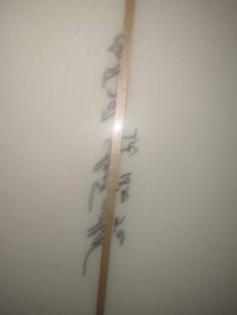 I have sale for one 7'4" STRETCH MINI-GUN . The board is a THRUSTER configured design and is meant for HEAVY WAVES of the WINTER as the BIGGER NORTHWEST SWELLS are coming . The board has NO DINGS ....does have a pressure line across the tail ....this will not affect the board as far as riding and has not diminished its strength in any way . The board does not come with fins or a leash ....but does come with a BOARD SOCK . The Board is not for a heavier person . Would work well for a PERSON in the 150 to 180 pound range , which is why I am selling this for my son who is looking at getting a bigger board . If interested please call me " KEVIN " @ show contact info