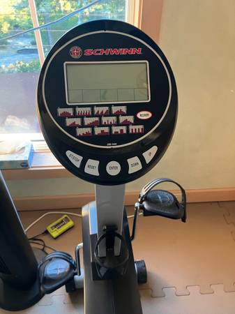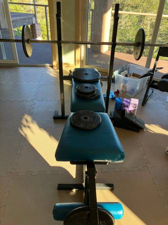 Moving sale - Pre-owned in used but good working condition. Vectra on-line home gym (back, chest legs and shoulders) along with a flat bench, miscellaneous weights and recumbent bike.