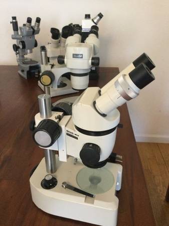 Over one hundred stereo and one hundred compound microscopes are available at reasonable prices (at cost) as part of our local "Micronaut" program. - typically about half what a used microscope dealer would charge. A good-quality compound or stereo scope might range from $200 to $500. We also have a few high-end scopes destined for mentors with fluorescence, phase contrast, and DIC