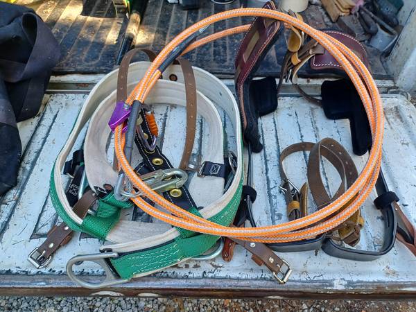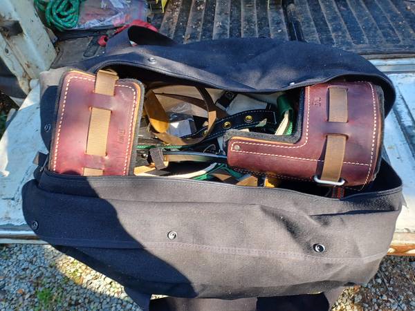 WesSpur spur climbing gear set. Never used. In carry bag. Like new. Size XL.