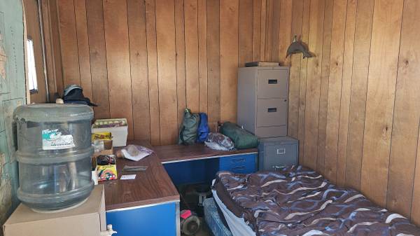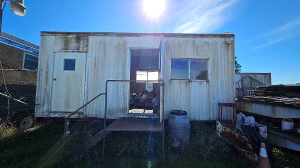 Needs a power wash and paint job to look good but no leaks, sturdy wide stairs and ready to go. Used for occasional overnights at work, fine for sleeping. Approx 20' x 8'. Looking to sell this week. Can include desk, shelves, bed if not already sold.