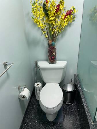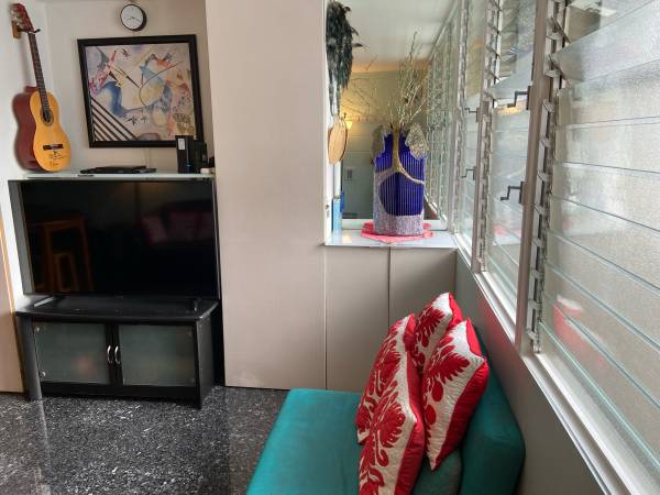 Living room, custom Kitchen, bedroom with Queen size bed and linens, custom made full bathroom with handheld bidet