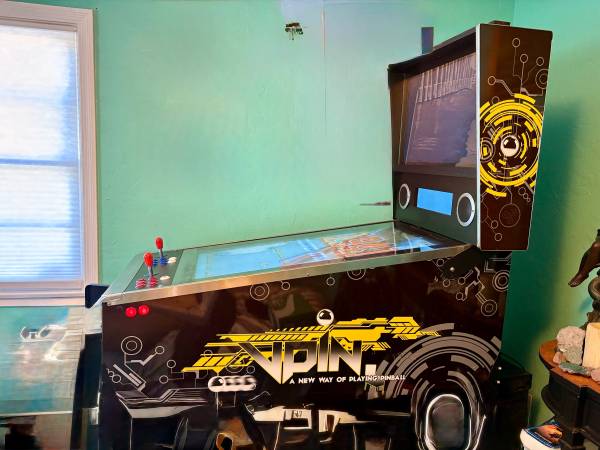 This is a life-size pinball arcade machine with over 2000 games. It comes with an excellent sound system for an authentic experience in playing any game you choose. This would make a great present for anyone young or old. It has two small blemishes on the side, other than that it is in excellent condition. if you want to give it as a Christmas present I am willing to store it for you until Christmas.