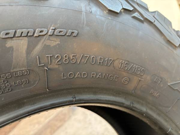 BF Goodrich KO2 285/70-17, good condition, no plugs or patches, approx 60% tread. Please text, thanks.
