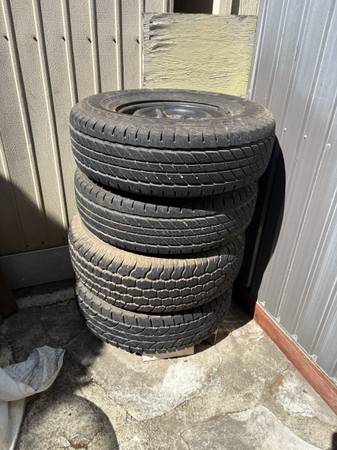 Used tires in good condition. Can be used for a Nissan pick up 6 holes or Toyota Tacoma . Please call