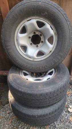 Decent set of Tayota Tacoma stock wheels with 235/75/R16 Cooper9 tires. Great for spares or utility trailer. Text is best! $100 CASH