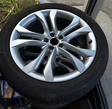 1 set 4 SQ5 stock 20" wheel set with tires. Some usable tread left. Perfect balance nothing bent. 3 wheels un curbed. 1 wheel has 2" curb mark seen in photo. $450 for the set.