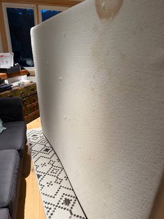 Free queen mattress with down feather topper. Mattress has stains. Got my son a new bed and need gone tonight or tomorrow morning Sarah