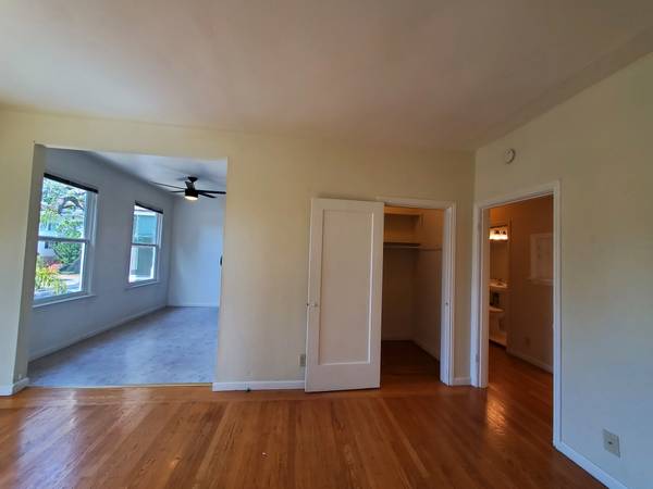 Very spacious unit has 1 bed, 1 bath in one of Redwood City's historic buildings. This unit features a well lit kitchen with dishwasher, full bath, and wood floors throughout. Unit has hard wood-floors. Bedroom has one large closet, and several other closet spaces and plenty of natural light and windows. Shared laundry in building, common area housekeeping, and gardener. Assigned parking space available in secure garage, and has back common area patio.