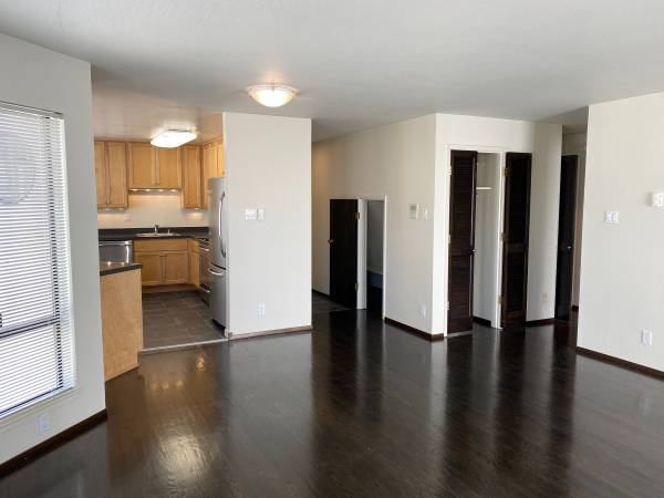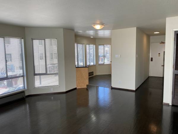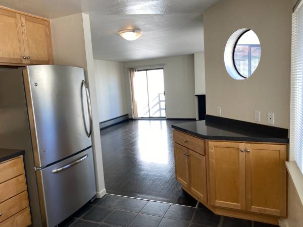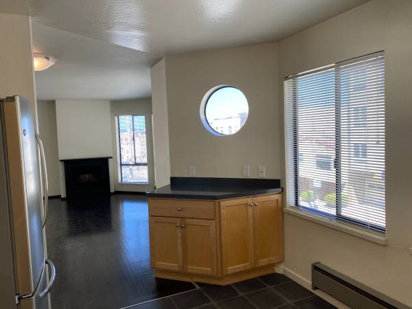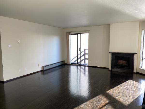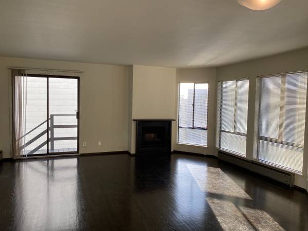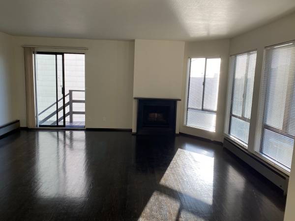 The unit features new hardwood floors, a remodeled kitchen with stainless appliances, new tile floor, new bathroom fixtures, a dishwasher and a gas fireplace.