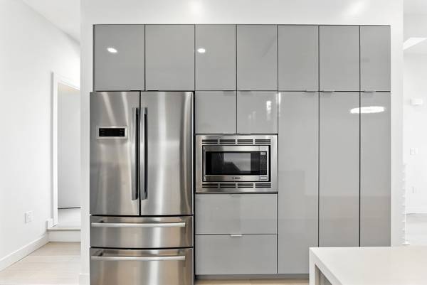 Step into a bright, expansive living area with a private balcony offering southwest-facing water views. The chef’s kitchen is a showstopper with quartz countertops, sleek modern cabinetry, and top-of-the-line Bosch stainless appliances make it perfect for entertaining or everyday gourmet meals.