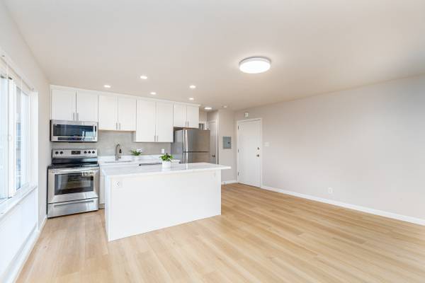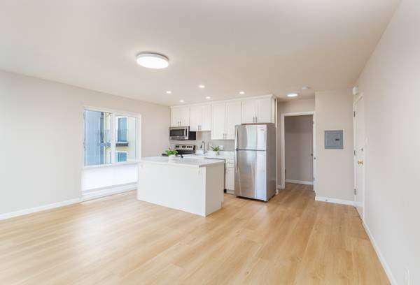 This fully remodeled 1-bedroom unit offers a bright, open floor plan with stainless steel appliances, sleek hardwood floors throughout, a kitchen island, and sweeping, unobstructed city views through large windows and your private balcony for a breath of fresh air. The bedroom includes a large closet with mirrored doors and gorgeous views. The building features a shared laundry in the basement and parking in the garage.